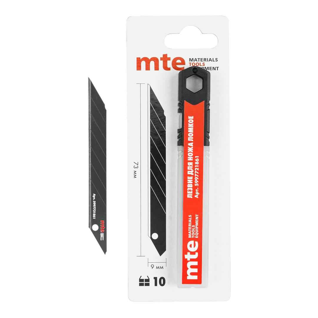 Лезвие для ножа ломкое, черное 9 мм, угол 30 градусов, mte