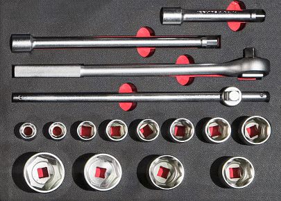 Ложемент с инструментами, торцевые головки 3, 4 дюйма, 5-й ящик тележки GRANDMASTER, IZELTAS, 13000005599