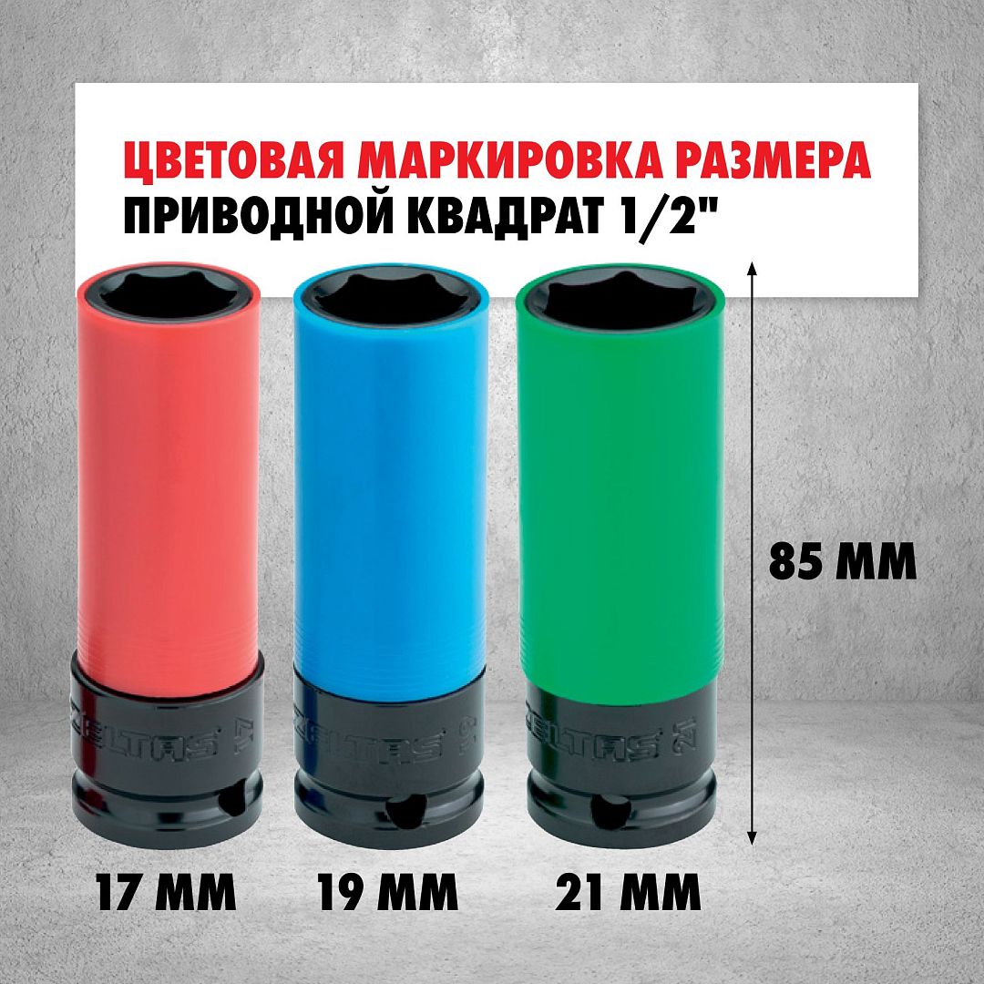 Набор торцевых головок ударных 1/2" 17-19-21 мм для литых дисков, 3предмет, IZELTAS, 1113009003, 14000000178