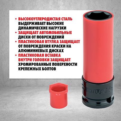 Головка торцевая ударная тонкостенная 19 мм, приводной квадрат 1/2", с пластиковой втулкой - для легкосплавных дисков, IZELTAS, 14000004391