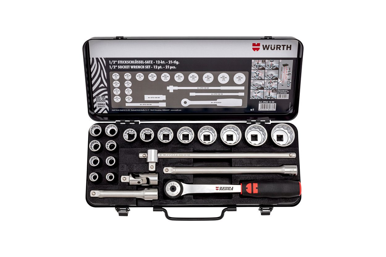 Набор головок 1/2" 12 гранных 21 предмет Wurth