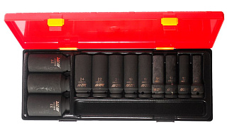 ударные шестигранные головоки 1/2": 10 мм., 12 мм., 13 мм., 14 мм., 17 мм., 19 мм., 21 мм., 22 мм., 24 мм., 27 мм., 30 мм., 32 мм.- 12 шт.
