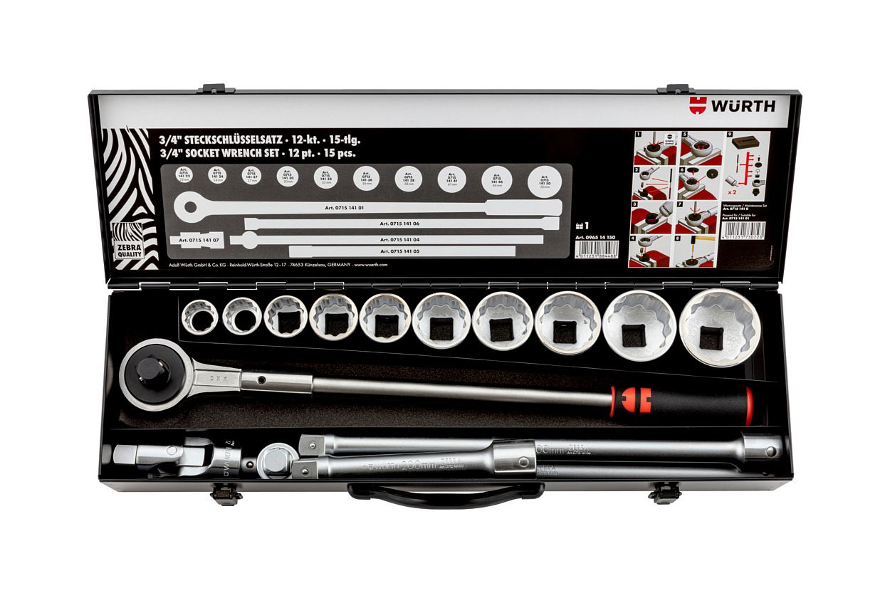 Набор торцевых головок 3/4" 12 гранных 15 предметов Wurth