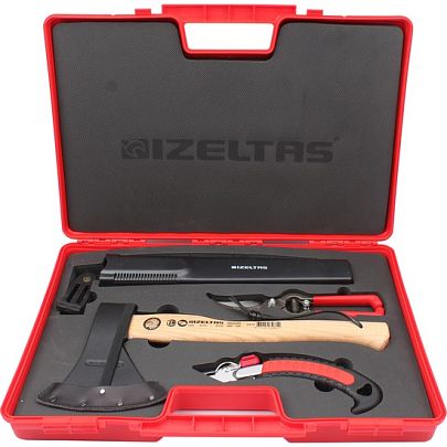 Пила - со сменными полотнами,топор и секатор изготовлены из высококачественной стали .