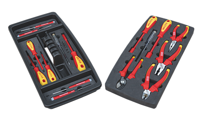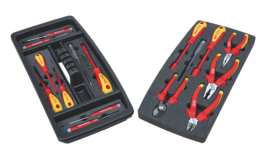 Содержит изолированные (диэлектрические) инструменты с изоляцией, выполненной в соответствии с стандартом IEC 60900 - Работа под напряжением до 1000 В переменного и 1500 В постоянного тока.