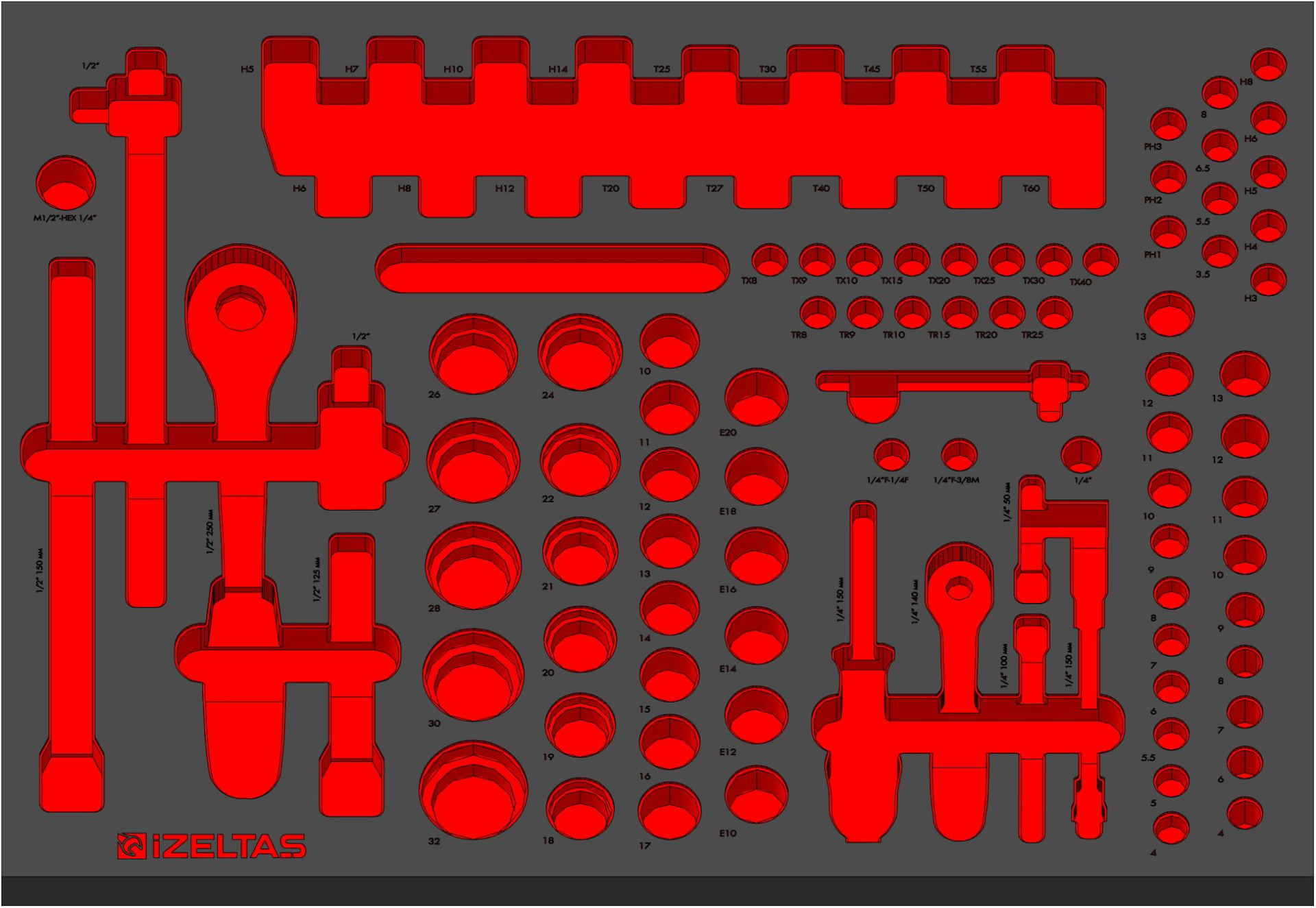 Набор инструмента в ложементе 5 ящ. инстр. тележки GARAGE, IZELTAS, 8242005011/13000002423