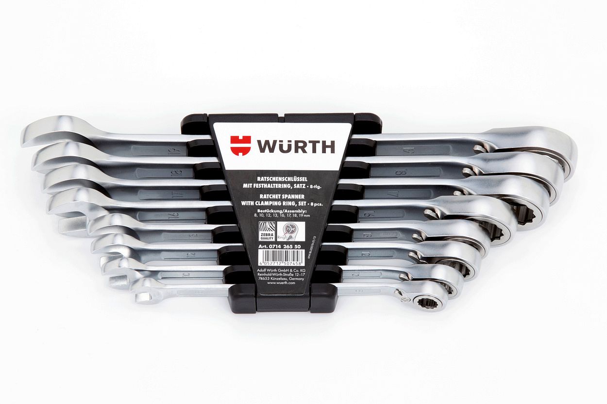 Набор ключей комбинированных с трещоткой 8 предметов Wurth