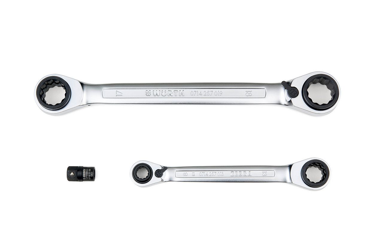 - 1 двусторонний накидной ключ с трещоткой 16 x 17 + 18 x 19