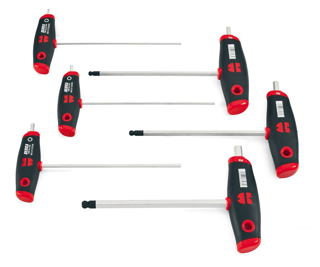- По 1 ключу с Т-образной рукояткой, под шестигранную сферическую головку 5 мм, 6 мм, 8 мм