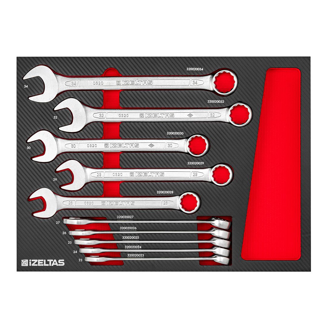 Набор комбинированных ключей 23-34 в ложементе карбон 10 предметов, габариты 548х400х30, IZELTAS