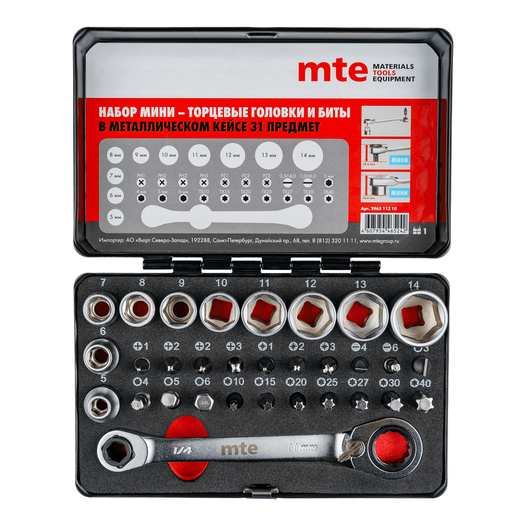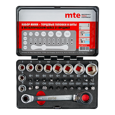 Набор мини торцевых головок и бит,31 предмет, mte