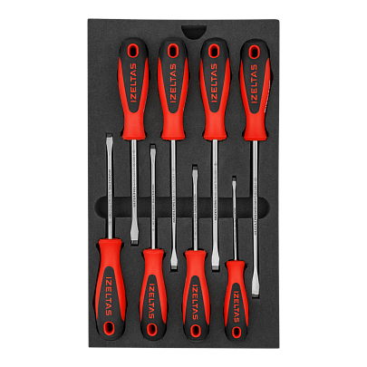 Набор отверток ERGONOMIK, прямой (SL) шлиц, двухкомпонентная рукоятка, 8 предметов, IZELTAS, 4350008108