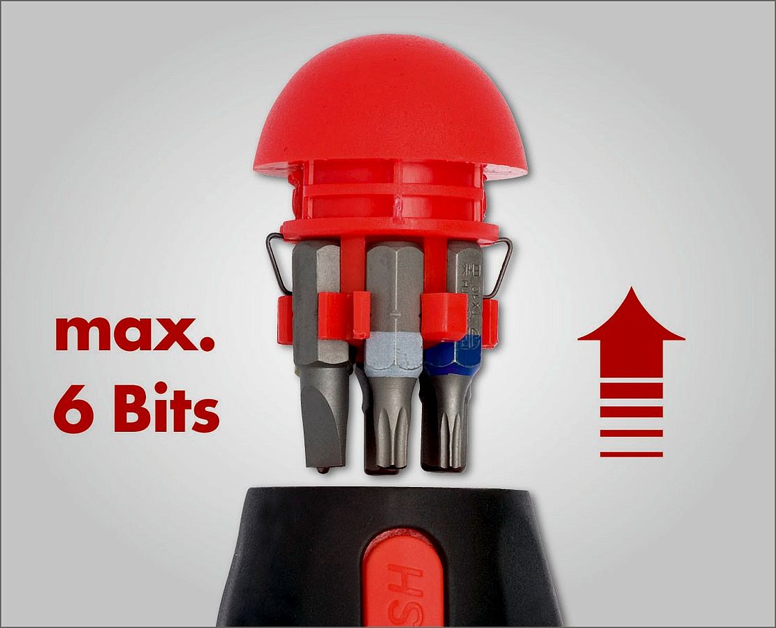 Благодаря регулируемой рукоятке может использоваться в качестве стандартной отвертки в прямом положении, либо в качестве отвертки с пистолетной рукояткой при повороте на 60°.