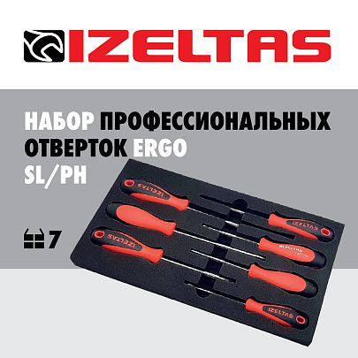 Набор отвёрток IZELTAS серии ERGONOMIK в картонной коробке