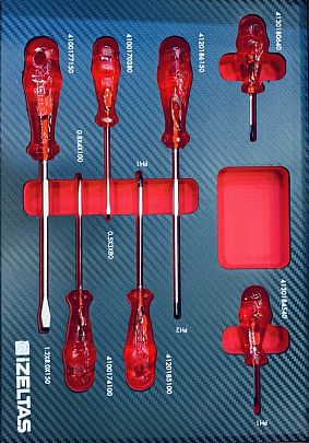 Подходит для инструментальных тележек IZELTAS с внутренними размерами выдвижных ящиков 548х400 мм.