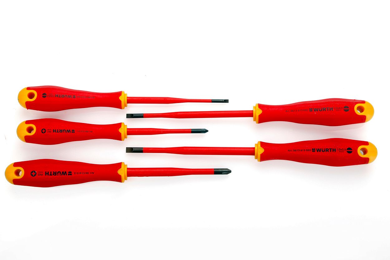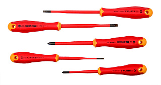 Набор изолированных отверток, прямой (SL) и крестоообразный (PH) шлиц, трехкомпонентная рукоятка уменьшенного размера, 5 предметов, VDE, Wurth