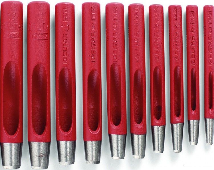 Набор пробойников IZELTAS для пробития круглых отверстий - 10 пробойников: