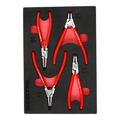 Набор съемников стопорных колец 19-60 в ложементе 4-ре предмета, габариты 230х335, IZELTAS, 2965905602
