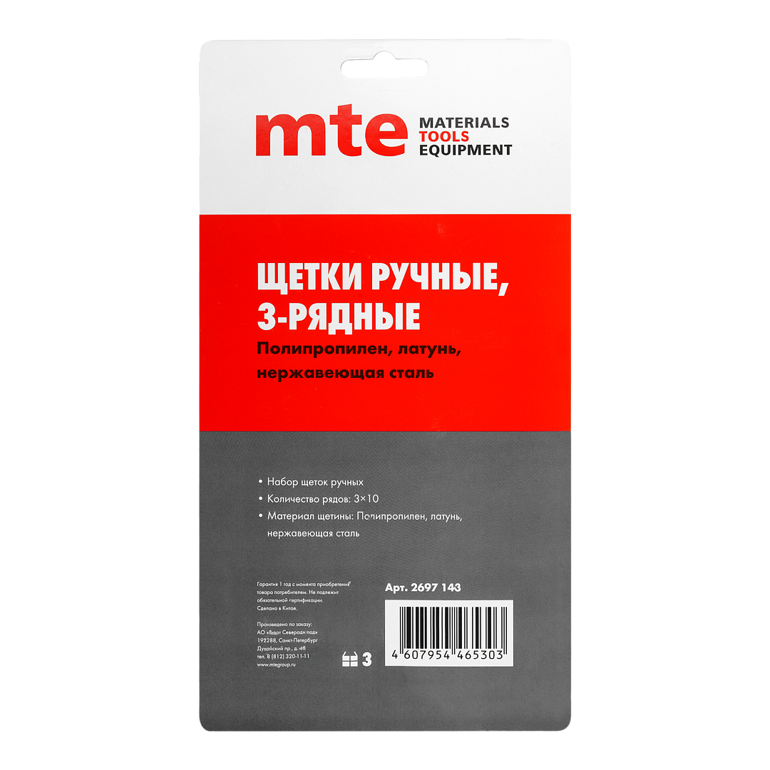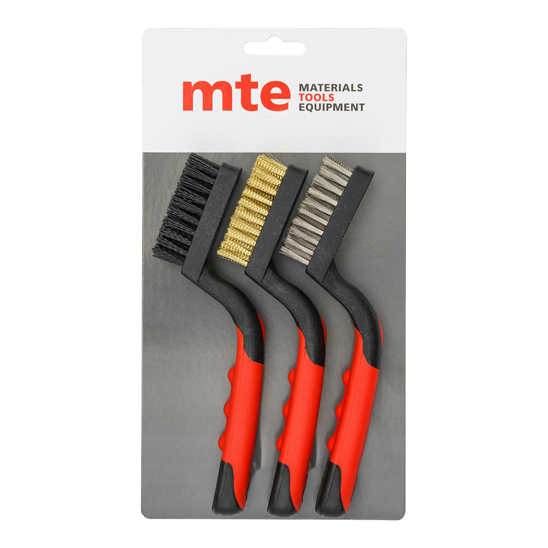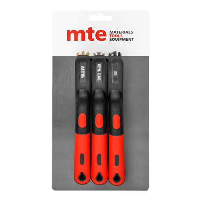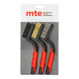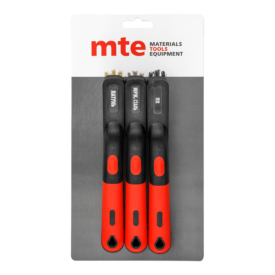 Набор щеток мини 3 предмета, щетина - сталь, нейлон, латунь, двухкомпонентная рукоятка, mte