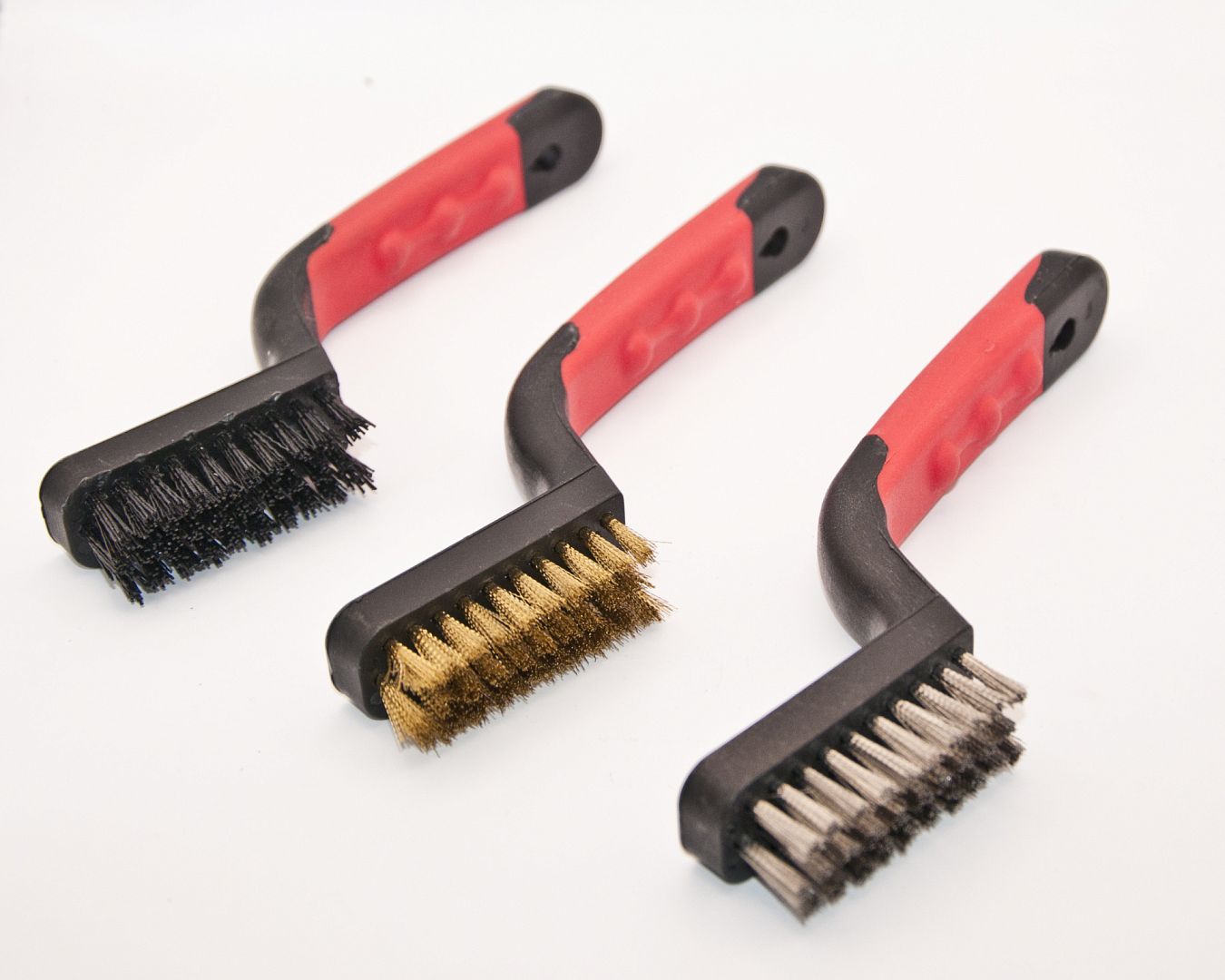 Состоит из трех щеток с разной щетиной: нержавеющая сталь, латунь, полипропилен.