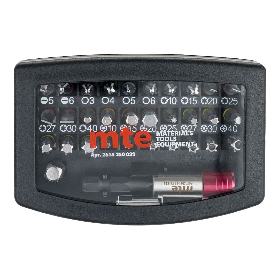 Набор торсионных бит 1/4″ 25 мм (PH, PZ, TX, HEX, SL) с держателем, 32 предмета, mte