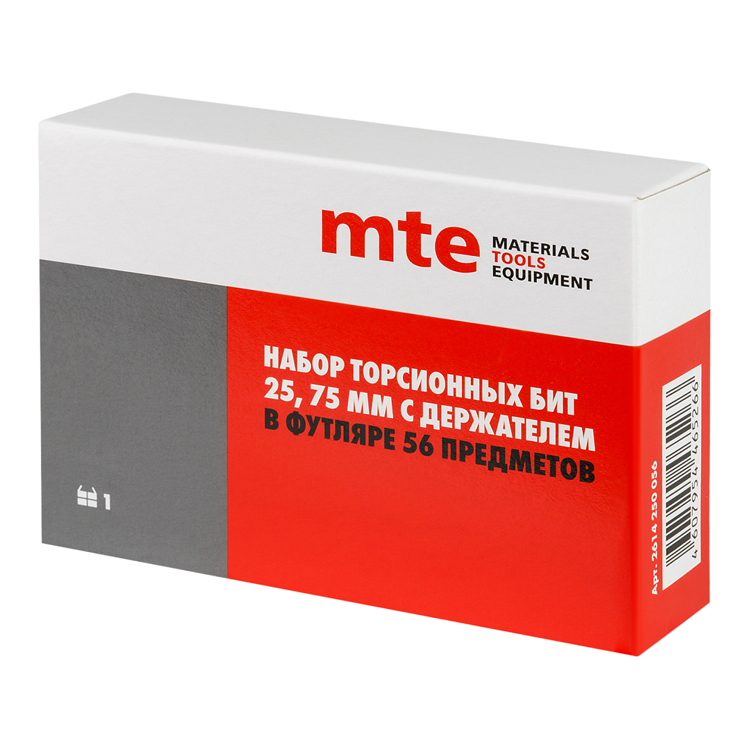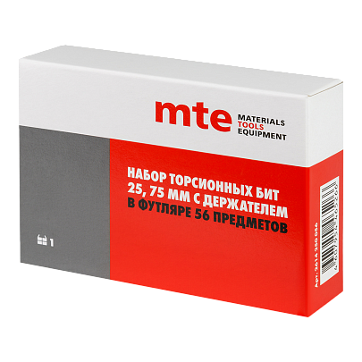 Набор торсионных бит 1/4″ 25мм и 75мм с держателем, 56 предметов, MTE