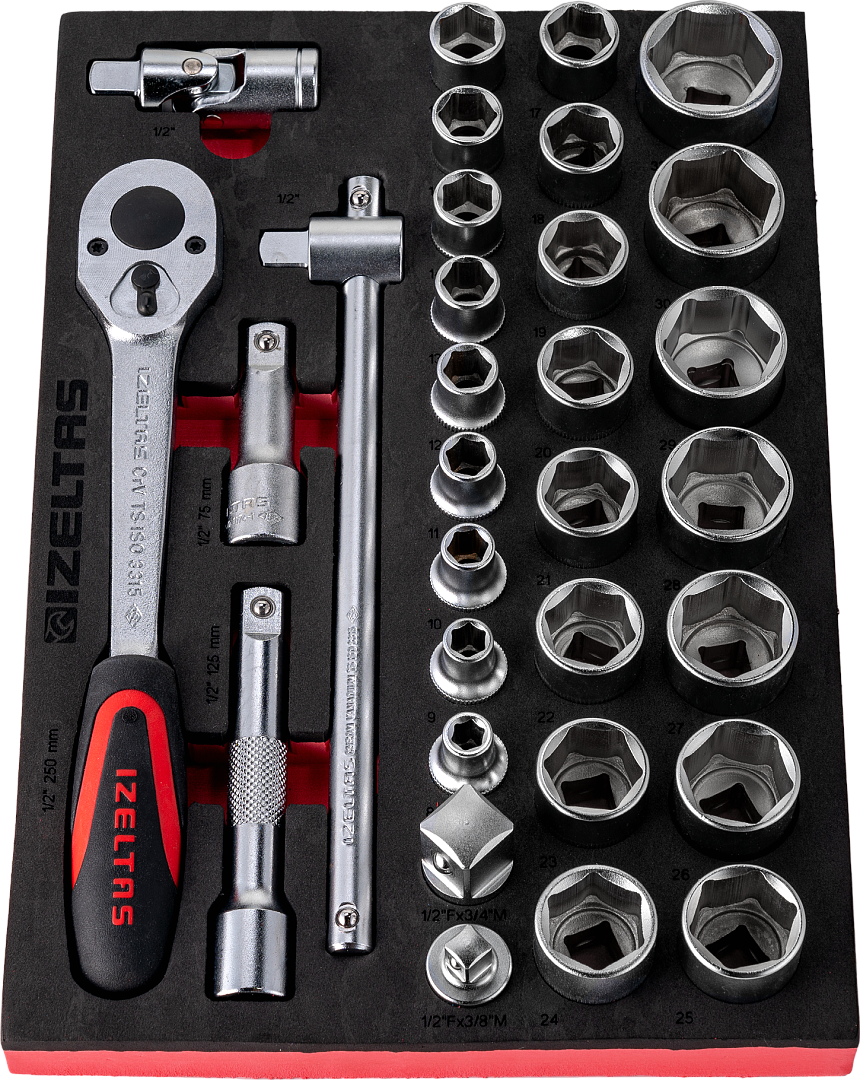 Набор торцевых головок 1/2" в ложементе 31 предмет, габариты 230х335, IZELTAS