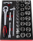 Включает торцевые головки размером от 8 до 32 мм, трещотку и наиболее востребованные соединители и переходники.