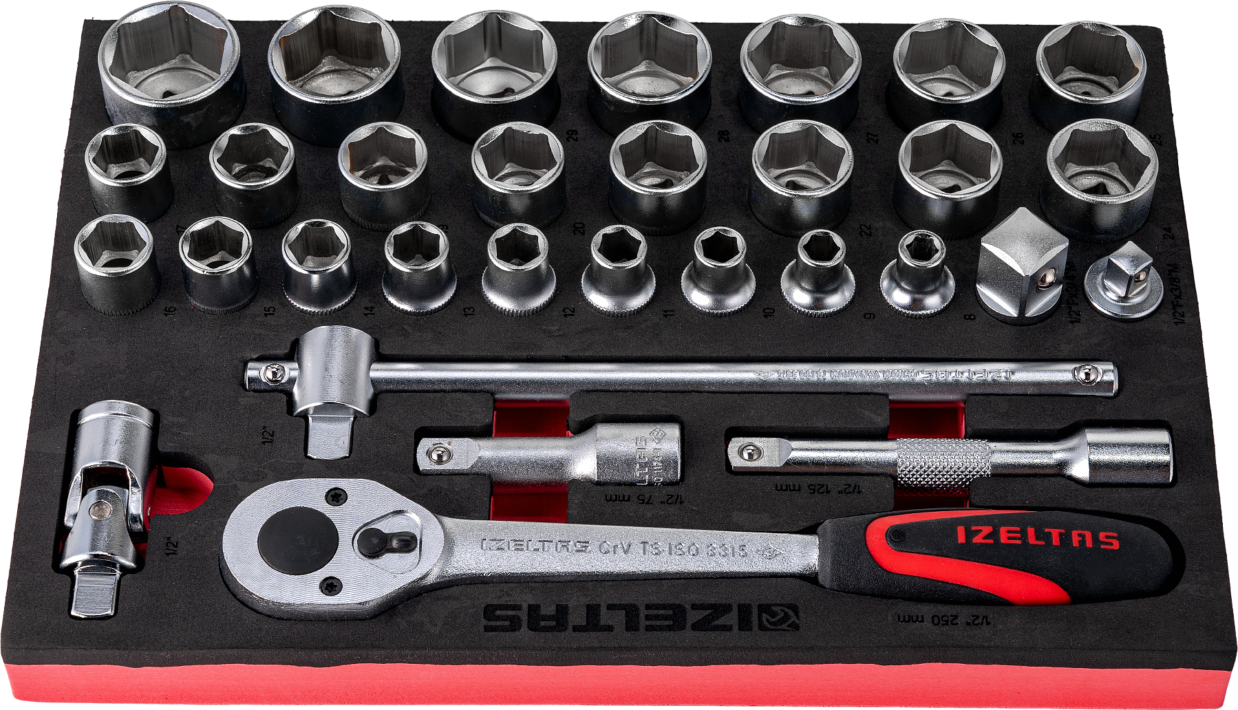 Пустой ложемент EVA, красно черный, для торцевых головок 1/2" 31 предмет, габариты 230х335, IZELTAS, 2955905208