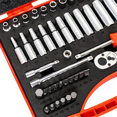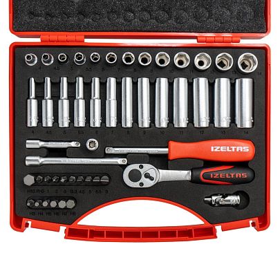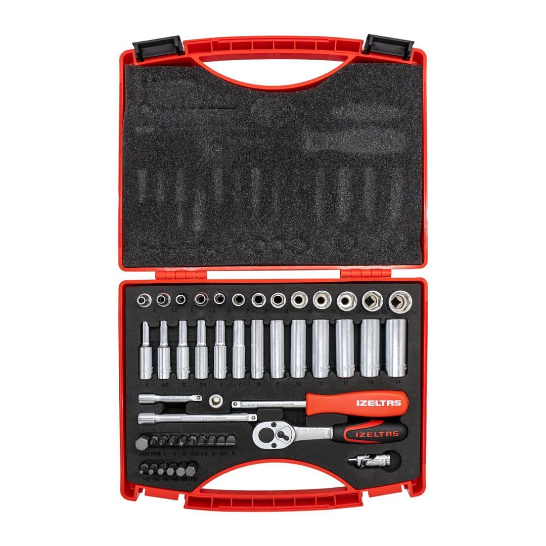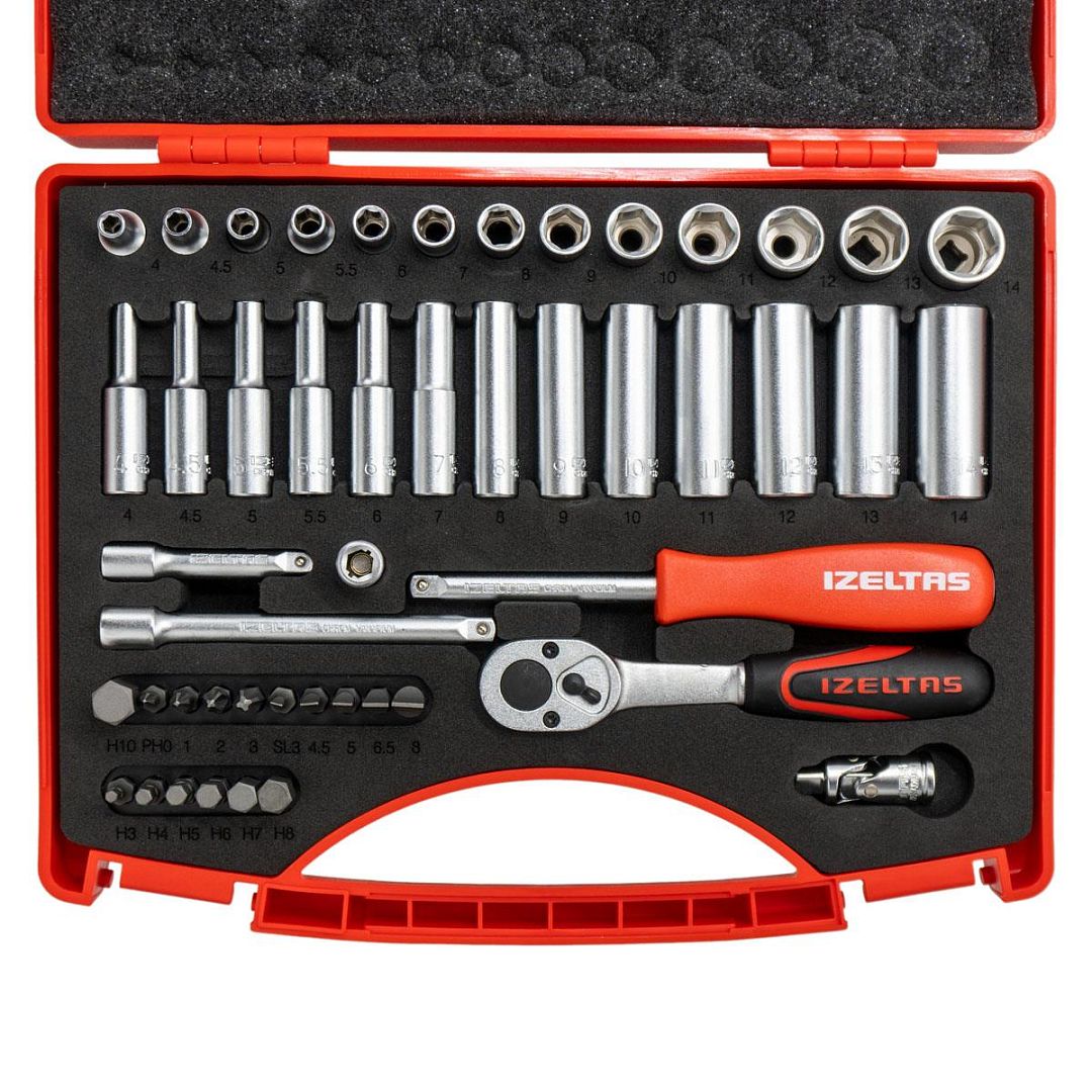 Набор торцевых головок 1/4" 6-гранных, 4-14 мм 48 предметов, IZELTAS, 14000005131