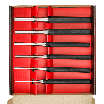 Выколотки изготовлены из высококачественной Хром-ванадиевой стали согласно Din6450