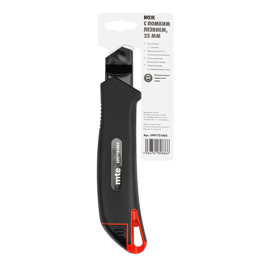 • Поставляется с 1 ломким сегментным лезвием 25 мм.