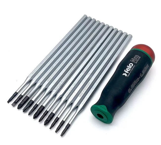 Отвертка динамомтерическая c регулировкой крутящего момента 0,6-1,5 Nm с набором насадок в кейсе, 14 предметов, FELO