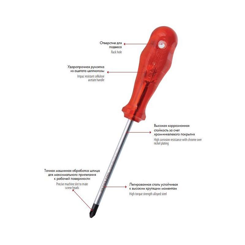 Отвертка Kraft с прямым шлицем (Slotted), рукоятка из ацетата целлюлозы, 0.5X3.0Х80, IZELTAS, 4100170380, 13000001272
