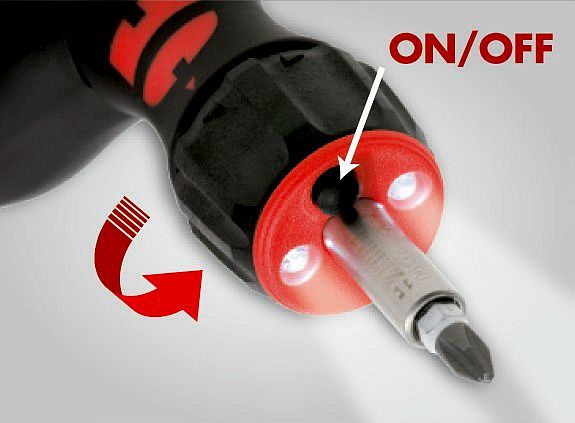 - Благодаря регулируемой рукоятке может использоваться в качестве стандартной отвертки в прямом положении либо в качестве отвертки с пистолетной рукояткой при повороте на 60°.