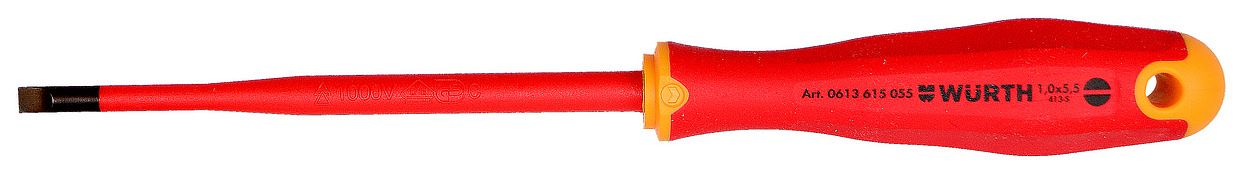 Отвертка изолированная с прямым шлицем (Slotted), трехкомпонентная рукоятка уменьшенного размера, VDE, 1.0X5.5Х125, Wurth