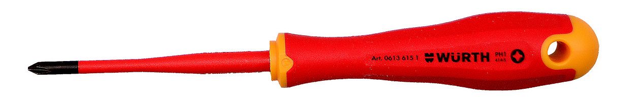 Отвертка изолированная с крестообразным шлицем (Phillips), трехкомпонентная рукоятка уменьшенного размера, VDE , PH1Х80, Wurth