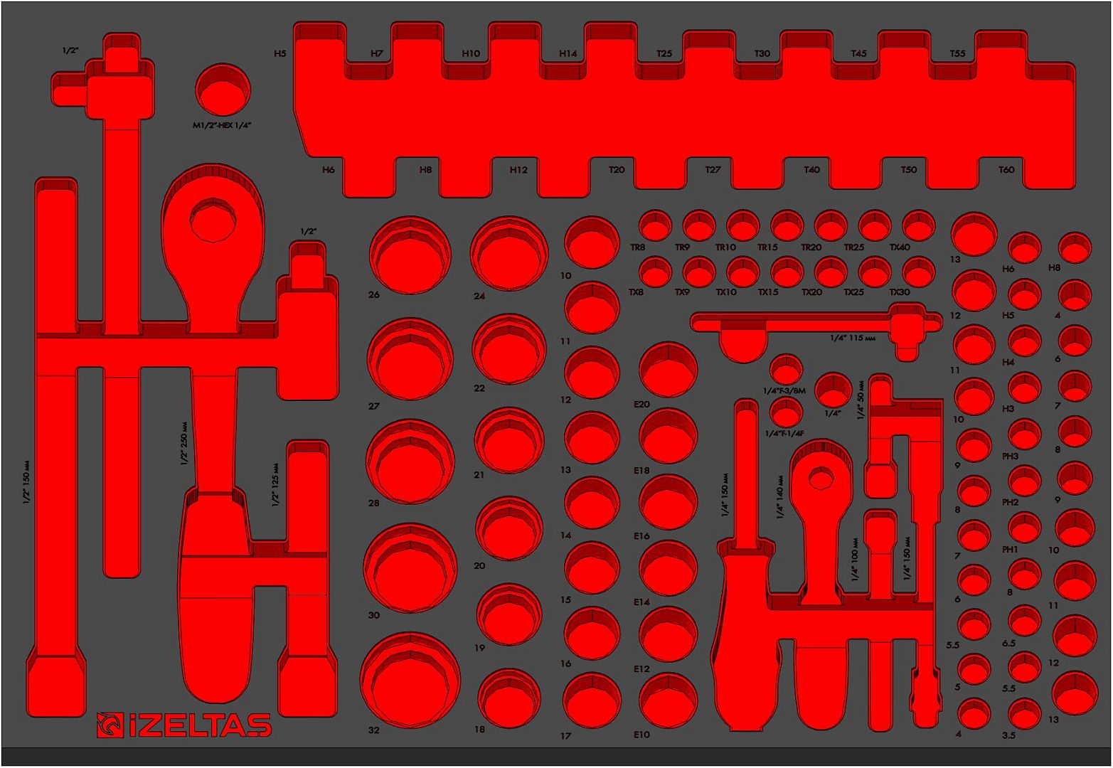 Пустой ложемент для набора головок 1/2+1/4" EVA карбон 500х350х30мм