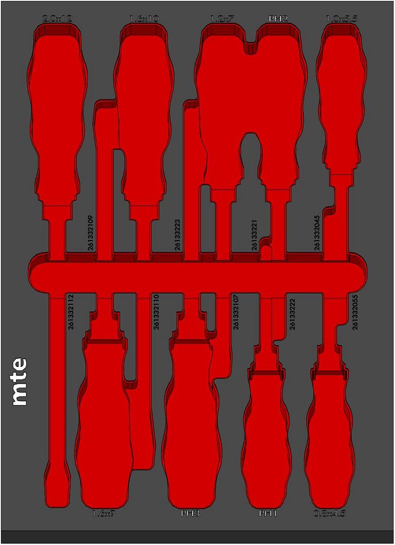 Пустой ложемент для набора ударных отверток mte EVA карбон 250х350х30мм