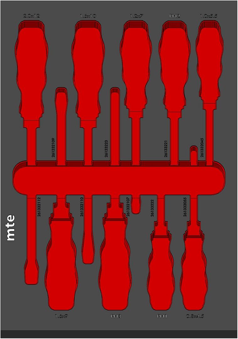 Пустой ложемент для набора ударных отверток mte EVA карбон 274х400х30мм