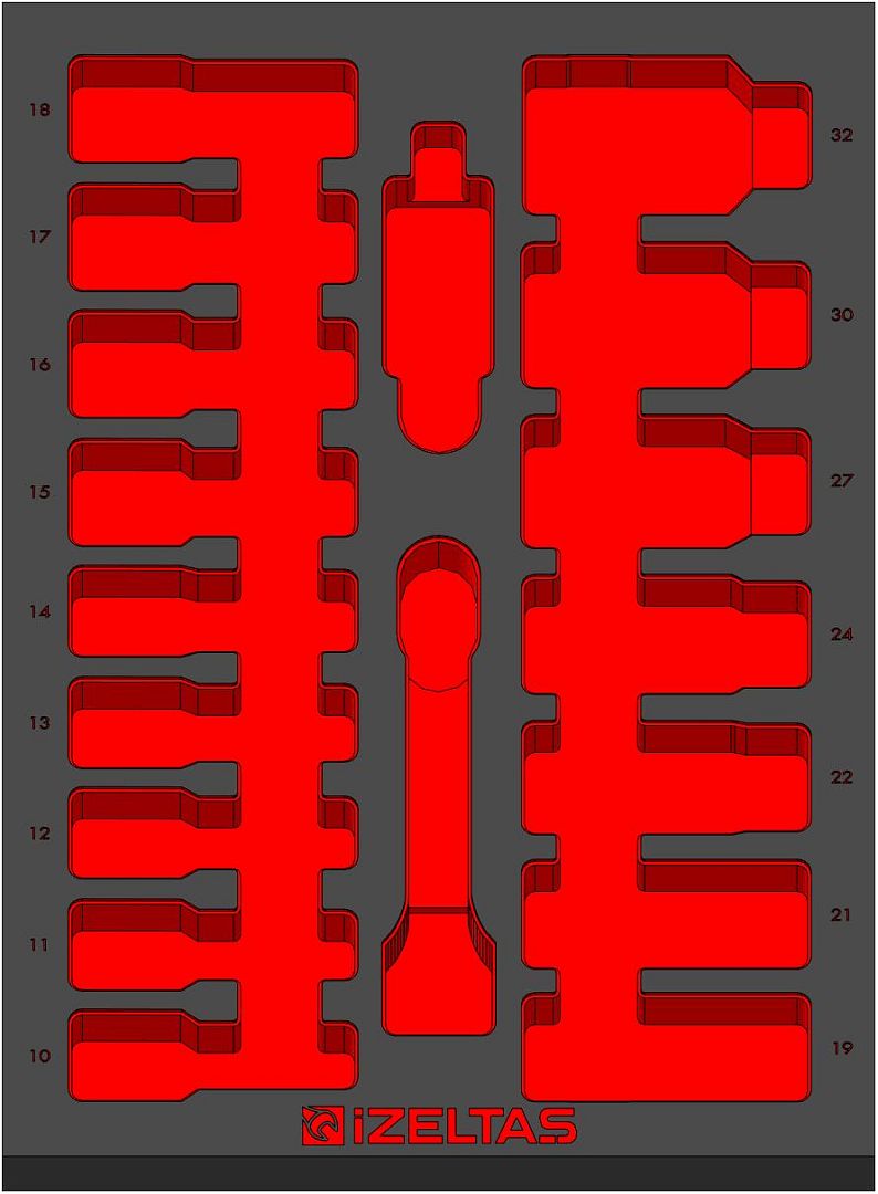 Пустой ложемент для набора усиленных удлиненных головок 1/2 EVA карбон 250х350х30мм