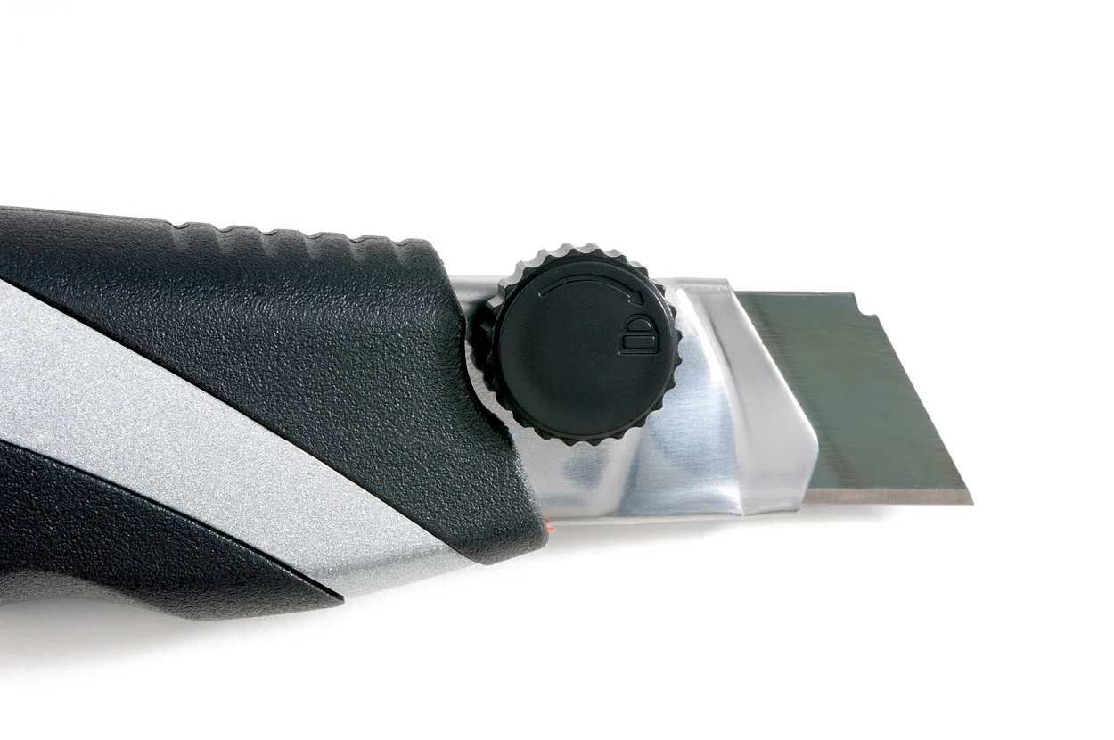 Зажимное колесо фиксирует лезвие в направляющей из нержавеющей стали.