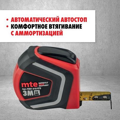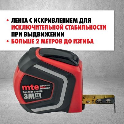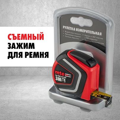 Отличительной особенностью данной рулетки является форма, за счет использование более широкой ленты 19 мм, а также форма зацепа с отверстием.