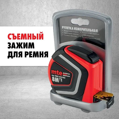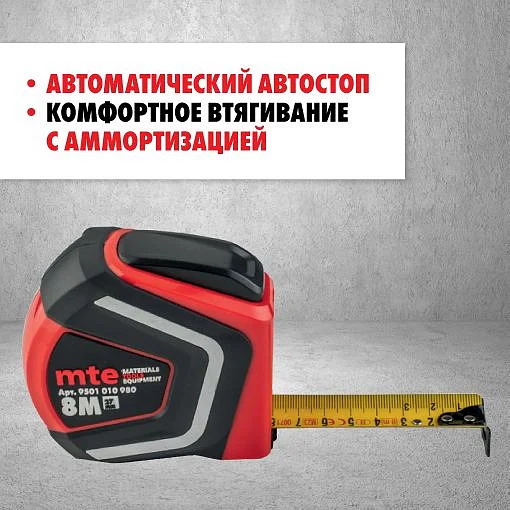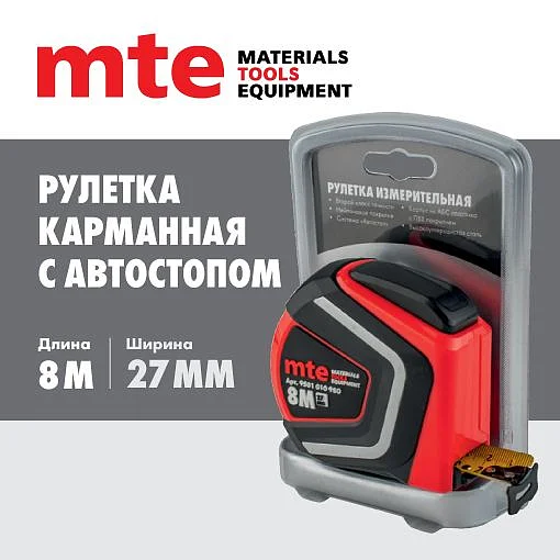 Высококачественная и удобная 8-ми метровая карманная рулетка с автоматической системой блокировки.