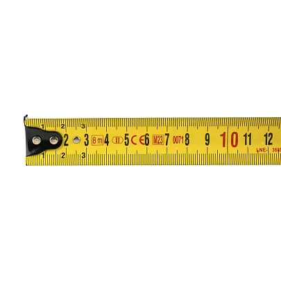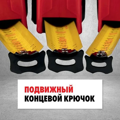Отличительной особенностью данной рулетки является форма, за счет использование более широкой ленты 27 мм, а также форма зацепа с отверстием.