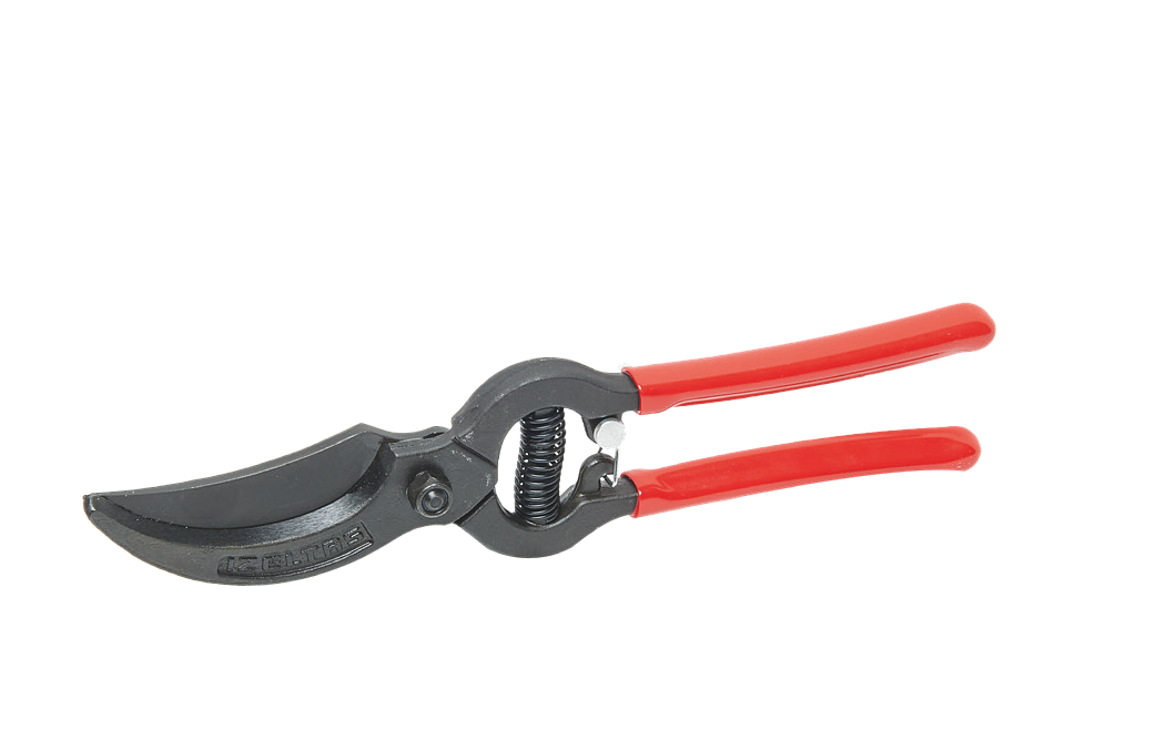 Секатор оснащен возвратной пружиной, что позволяет работать одной рукой, а рукоятки имеют ПВХ покрытие для удобного хвата.