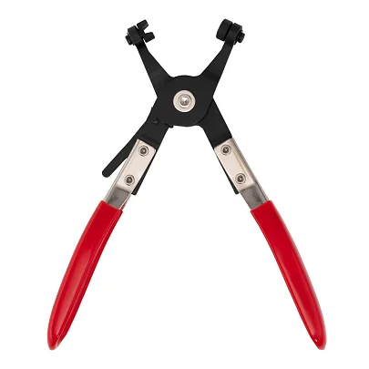 Захваты с канавками, лучше всего подходящими для удержания плоских хомутов, свободно вращаются вокруг своей оси, что делает щипцы удобными при использовании в труднодоступных местах.
