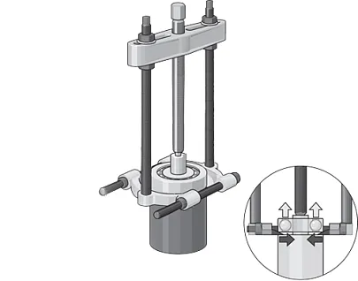 Предназначен для снятия роликовых конических подшипников и шарикоподшипников, внутренних колец и других плотно посаженных тонкостенных деталей.