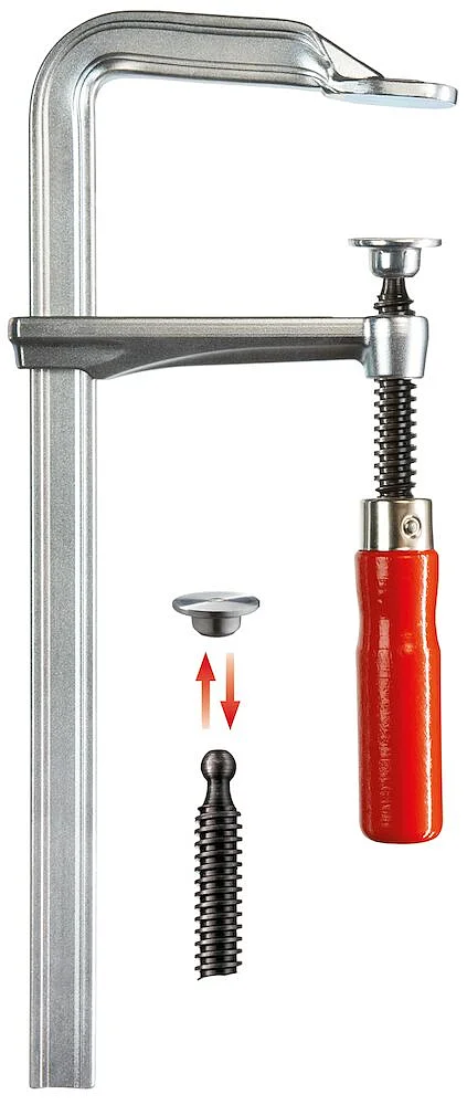 Струбцина имеет F-образную форму, которая гарантирует максимально надёжный зажим.