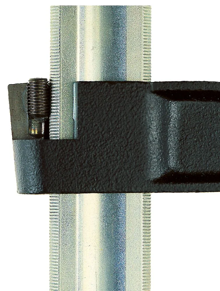 Установочный винт в скользящей скобе упирается в рифление направляющей, что препятствует ослабеванию и перекрашиванию струбцины.